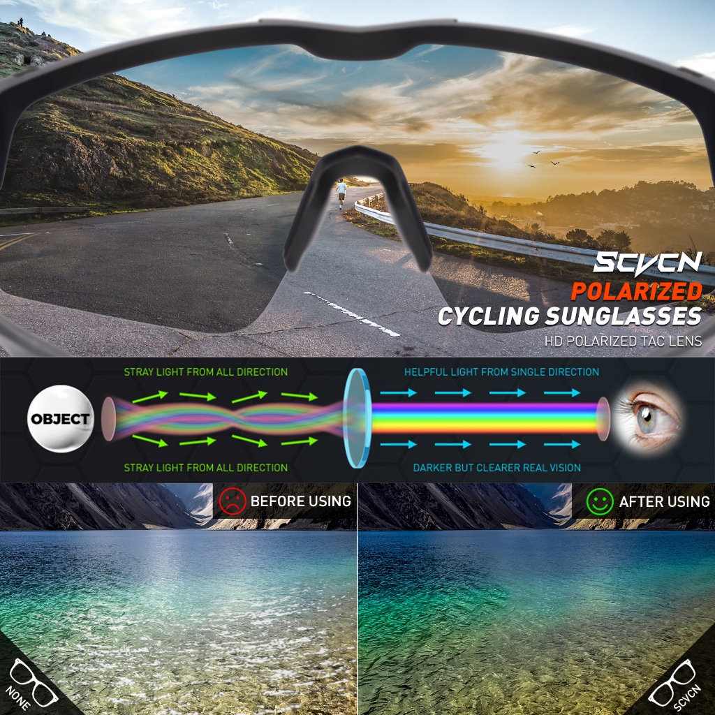 SCVCN Kacamata Bersepeda Motor Polarized UV400 Kacamata Mengemudi Lari Sepeda Mode Wanita Pria