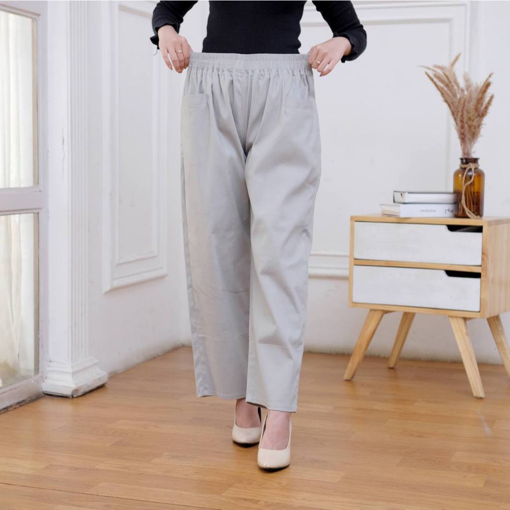 Kanaya_style - Celana Kulot Panjang Wanita Korean Loong Pants Jumbo Bahan Katun Twill Premium Stretch Tebal Pinggang Ful