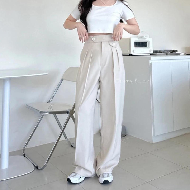 GF - Celana Kulot Wanita Loose Pants Highwaist ORO PANTS - Variasi Kancing Anti kusut Bahan Jatuh