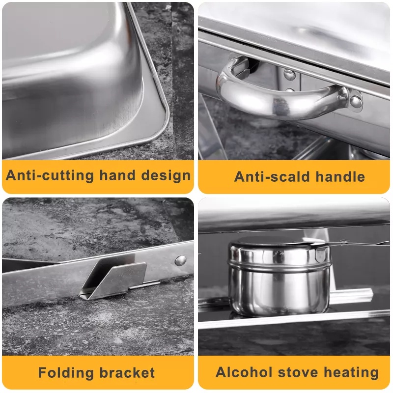 Prasmanan RollTop/Bulat 6,8L Buffet Set/Chafing dish 1/2/3 sekat 12L pemanas makanan Stainless Steel