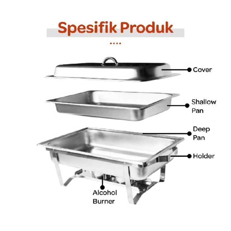 Wadah Prasmanan Buffet Square Chafing Dish Stainless 2 Sekat & 3 Sekat