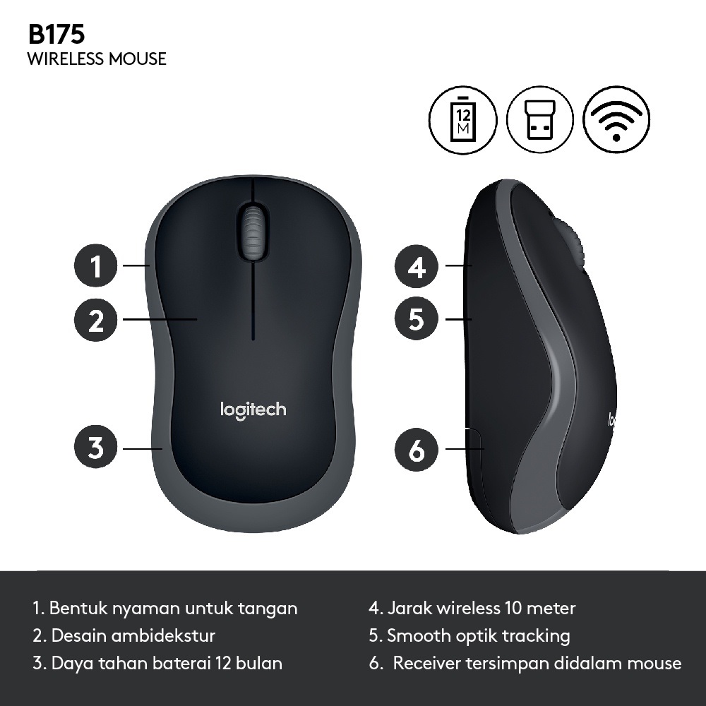 MOUSE LOGITECH B175 MOUSE WIRELESS UNTUK WINDOWS, MAC, LINUX DAN CHROMEOS LAPTOP KOMPUTER