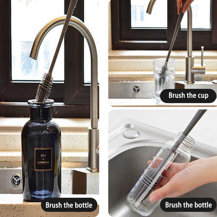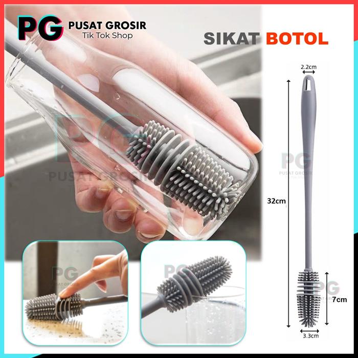 Sikat Botol silikon gagang panjang pembersih gelas tumbler cuci botol