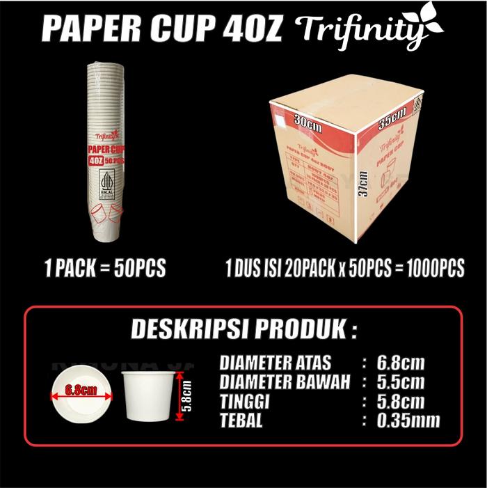 Paper Cup HALAL Tebal 4oz 120ml 8oz 240ml 12oz 360ml 16oz 480ml 22oz Pack Gelas Kertas Trifinity JSP - Peper cup 4oz