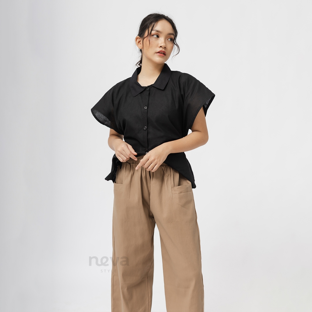 Neva Style - Uniqllo Baggy Pants Jumbo Bahan Katun Twill / Celana Kulot Ankle Pants Pinggang Karet