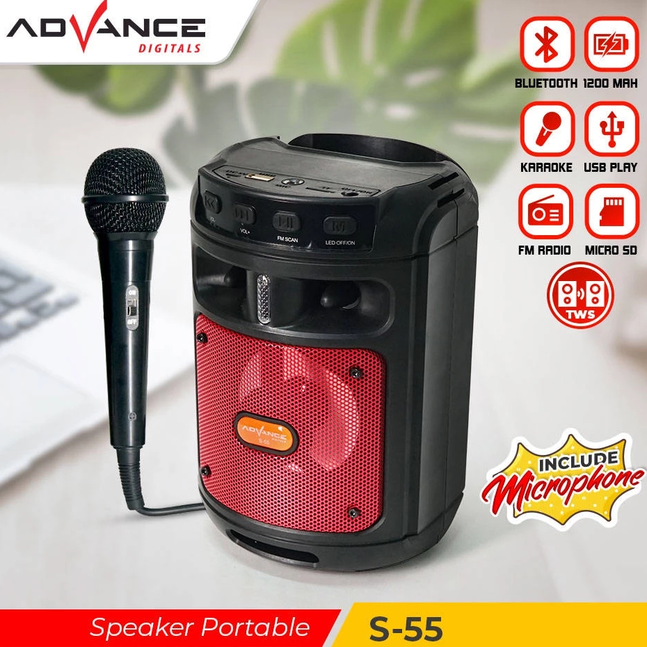 [Star] Advance S55 Speaker Bluetooth Karaoke Wireless Portable Super Bass Aktif BONUS Mic Kabel FREE ONGKIR