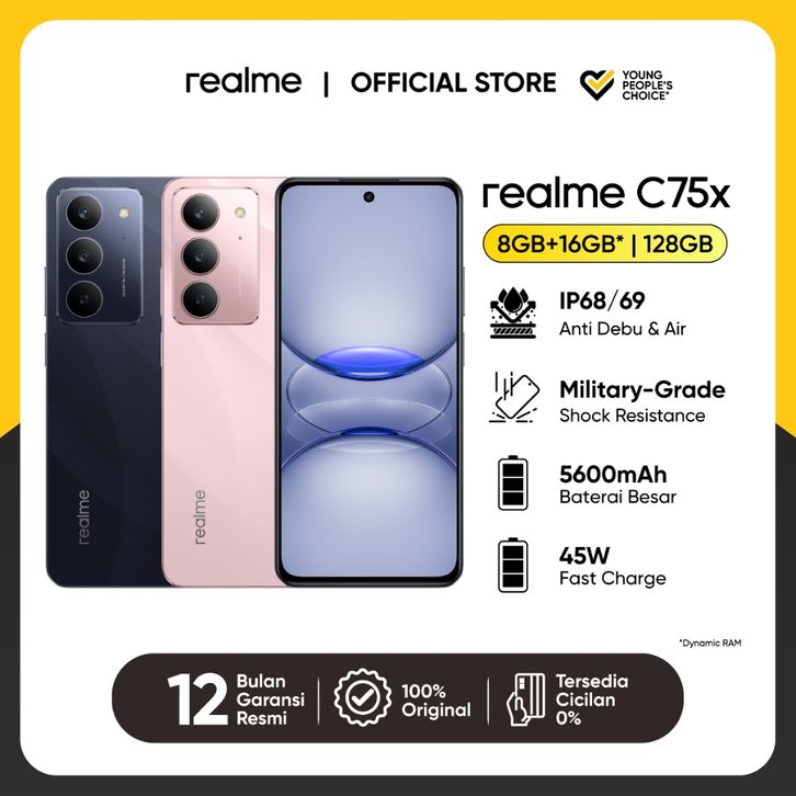 realme C75x 8GB+16GB*|128GB (IP68/69 Anti debu & Air | Military Grade shock resistance | Baterai 5600mAh 45W Fast