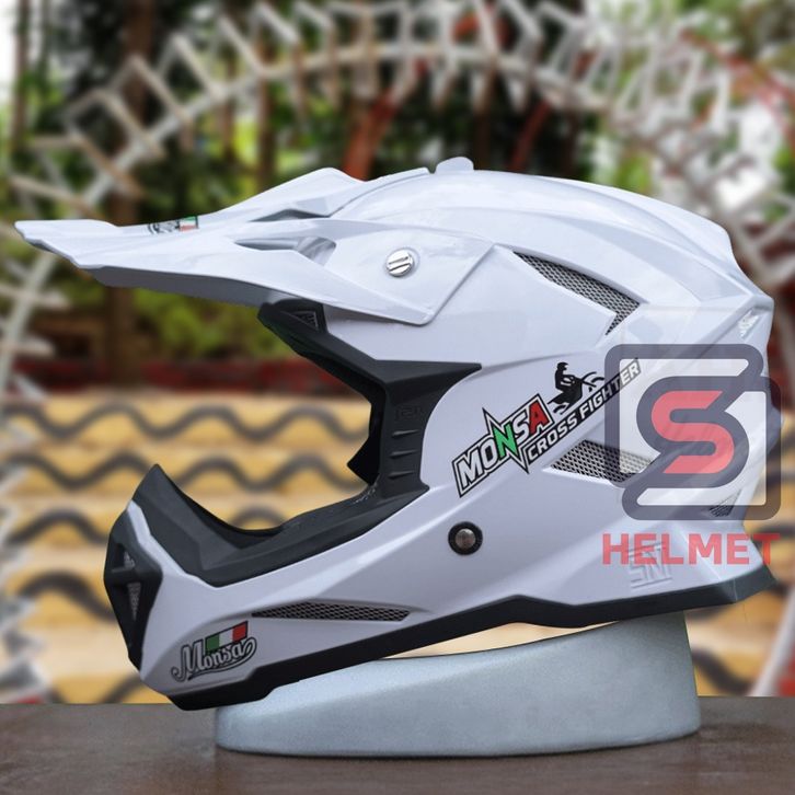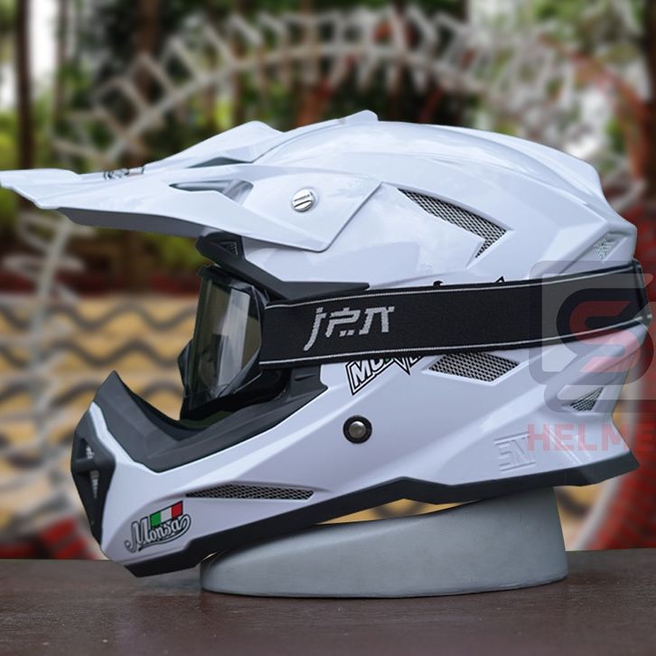 NEW Helm Motor Trail Monsa Cross Solid Anak Sampai Dewasa SNI Paket Goggle Warna Putih enahg