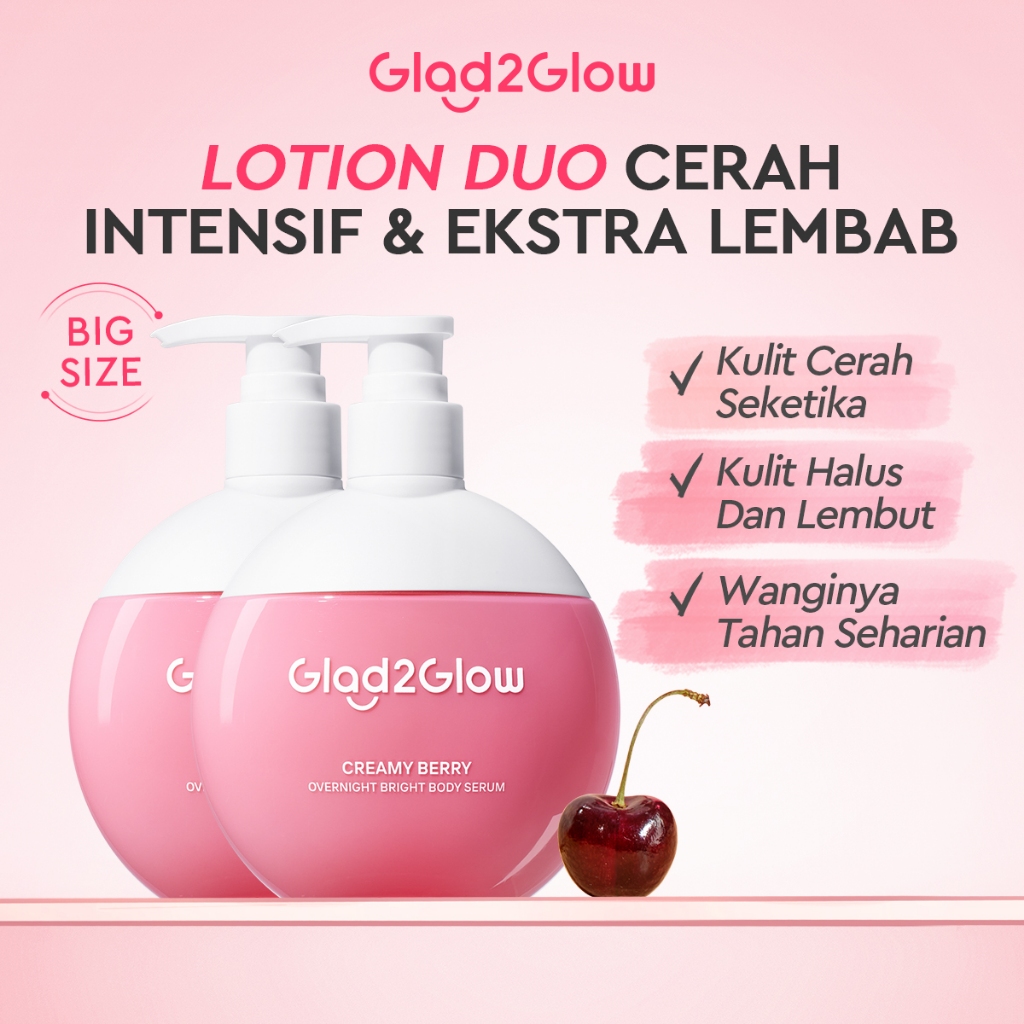 [Mall] Glad2Glow Creamy Berry Overnight Bright Body Serum 300ml body lotion handbody aha whitening body serum body serum