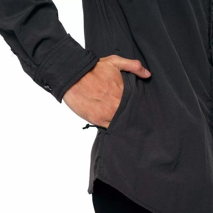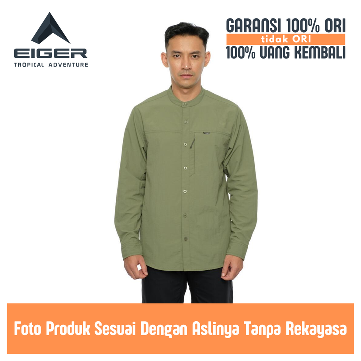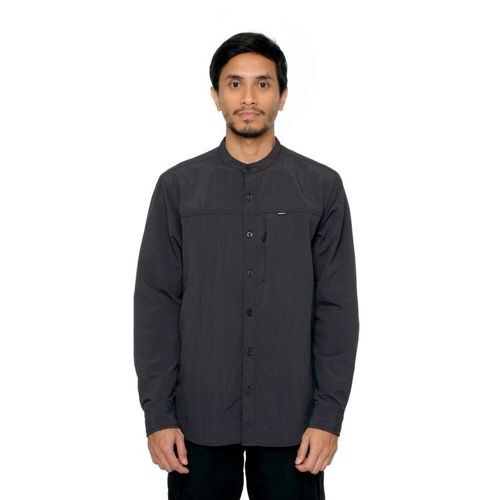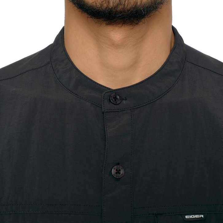 Kemeja Koko Panjang Pria Eiger Original Bahan Nilon Obsidian Stand Collar Ls Shirt