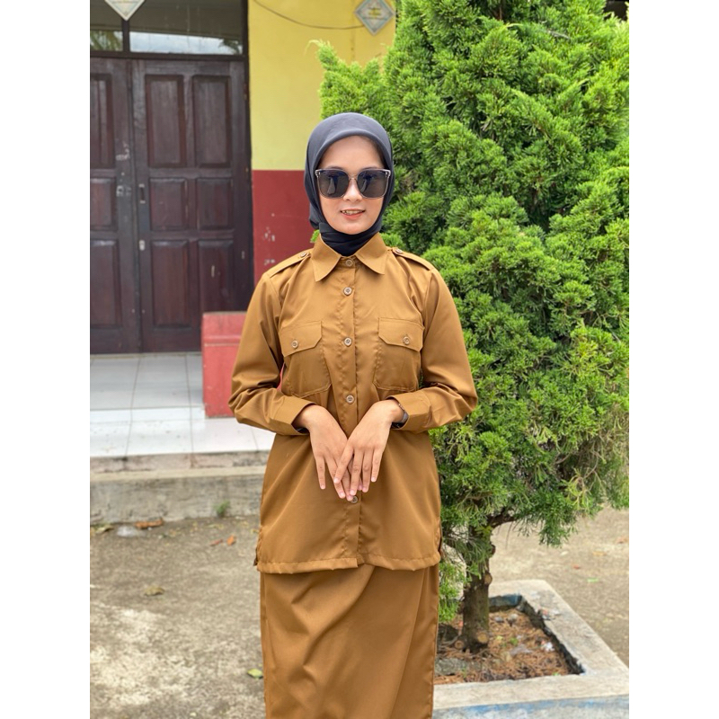 Baju Pemda Wanita PNS Terbaru • Setelan Rapi Elegan + Saku Dada • Nyaman Dipakai Sehari-hari"