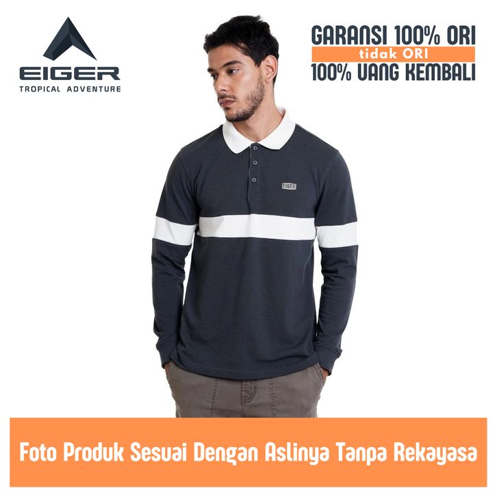 Kaos Polo Pria Lengan Panjang Eiger Original Baju Kerah Bahan Katun Dark Grey X- Swansonshirt Ls