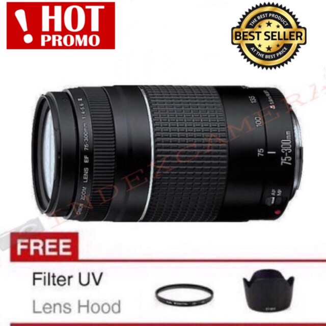 Lensa Canon EF 75-300MM III USM NEW PAKET LENGKAP DSLR CANON DAN MIRRORLESS DENGAN ADAPTER