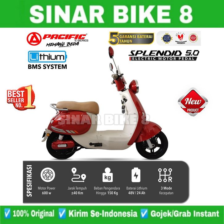 Sepeda Listrik PACIFIC SPLENDID 5.0 Electric Bike 600 Watt Baterai Lithium Garansi Resmi
