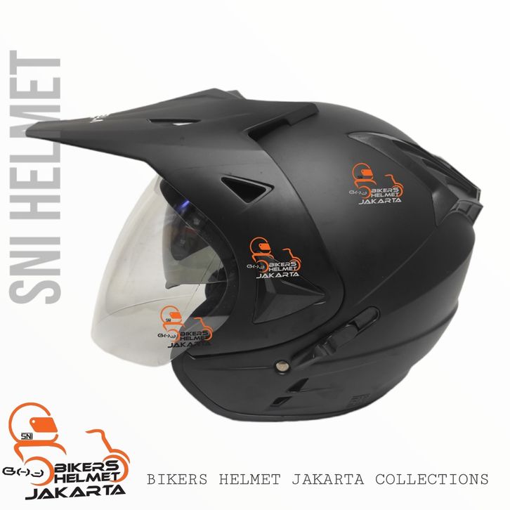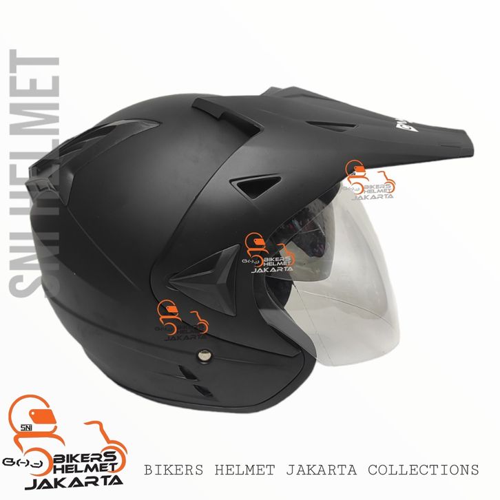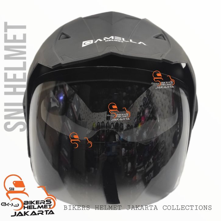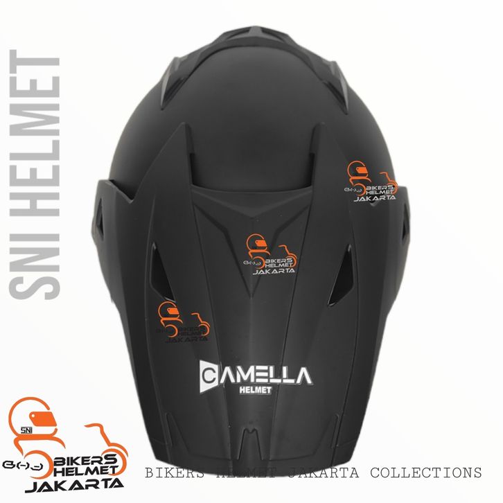 PROMO HELM CAMELLA SEMI CROSS SOLID BLACK DOF DOUBLE VISOR HALF FACE SNI acehr