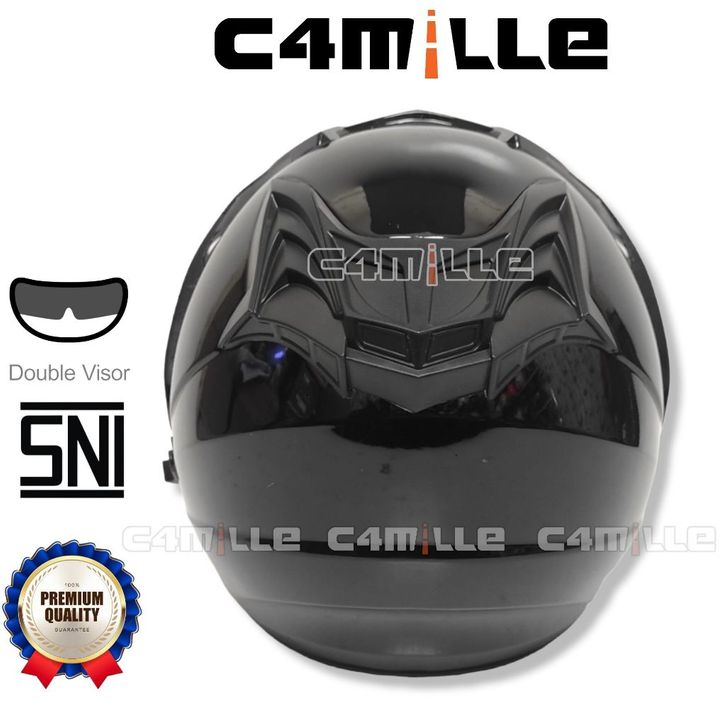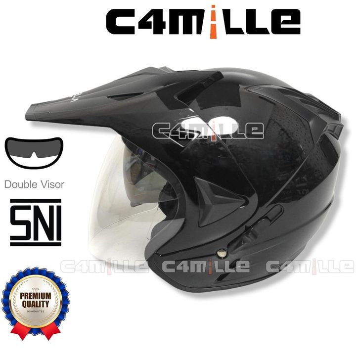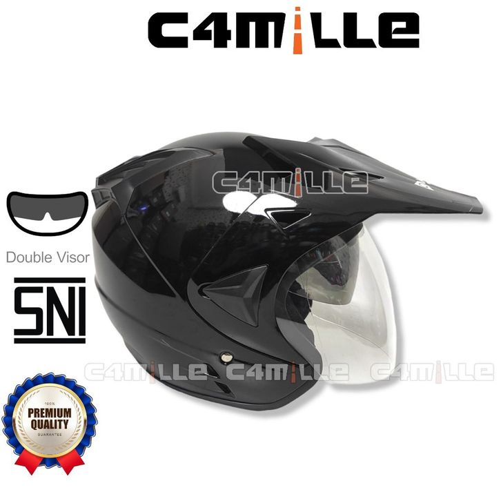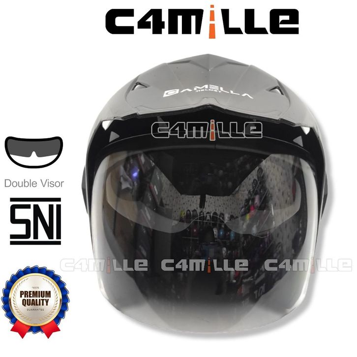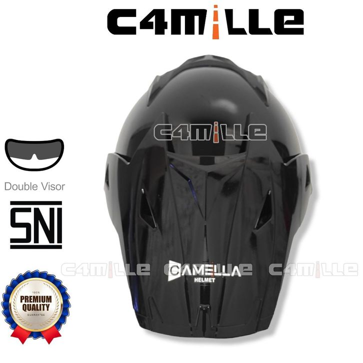 GROSIR HELM CAMELLA SEMI CROSS SOLID BLACK GLOSS DOUBLE VISOR HALF FACE SNI efilb