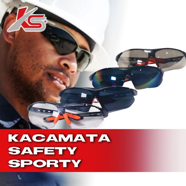 TERLARIS K55 Kacamata Safety Sporty Proyek Las Bening Hitam Pelangi Cermin ubilg