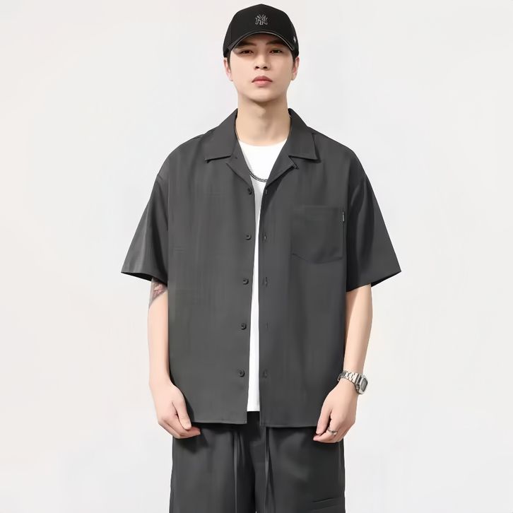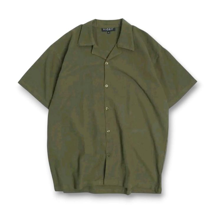 [Star] Kemeja Vintage Import Lengan Pendek Boxy Atasan Polos Pria Casual Korean Style Katun Halus Jumbo