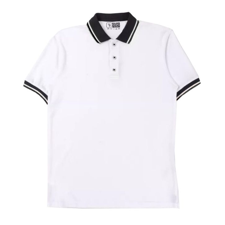 Rambidend - Kaos Polo Shirt Polos Kombinasi Kerah T-Shirt Baju Santai Pria Wanita Kerah List (Unisex)