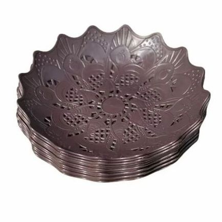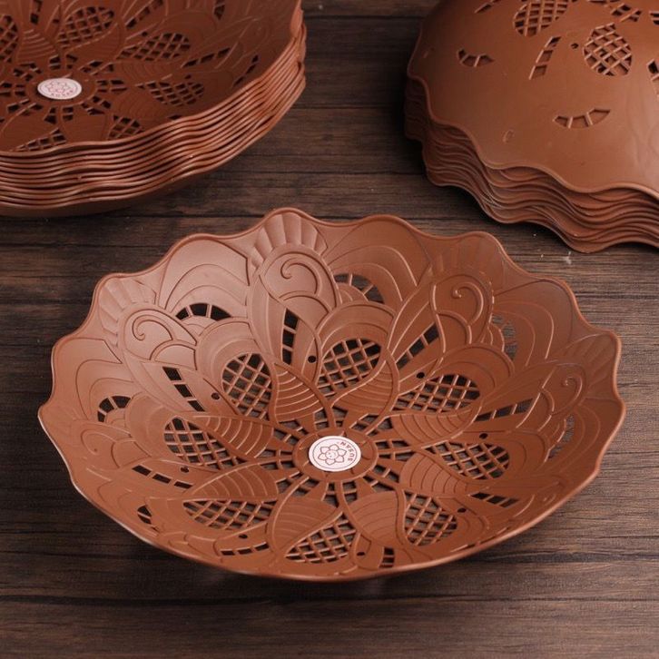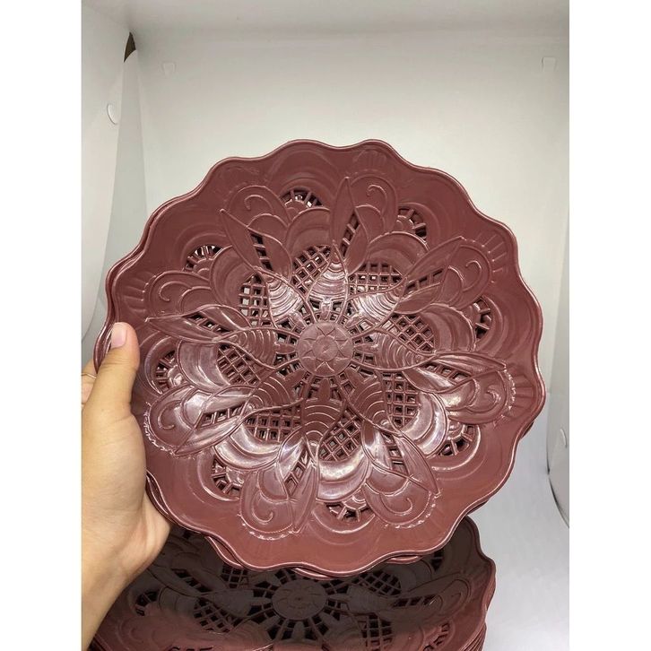 12 PCS Piring Rotan Plastik New Motif Bunga Untuk Buah