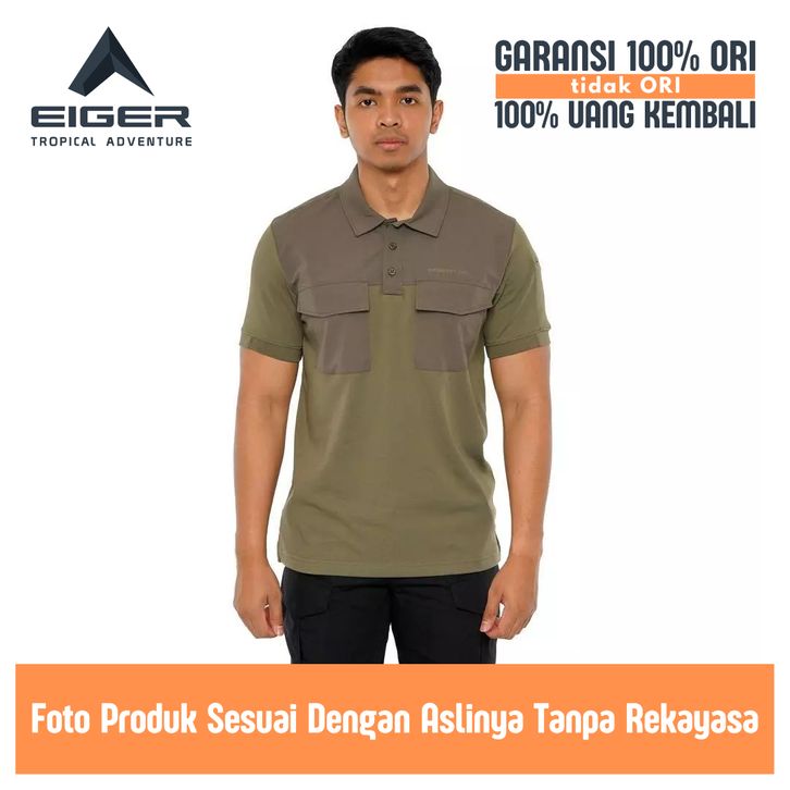 Kaos Polo Pria Lengan Pendek Eiger Original Baju Kerah Bahan Polyester Hijau Olive Stinger Tactical Ss