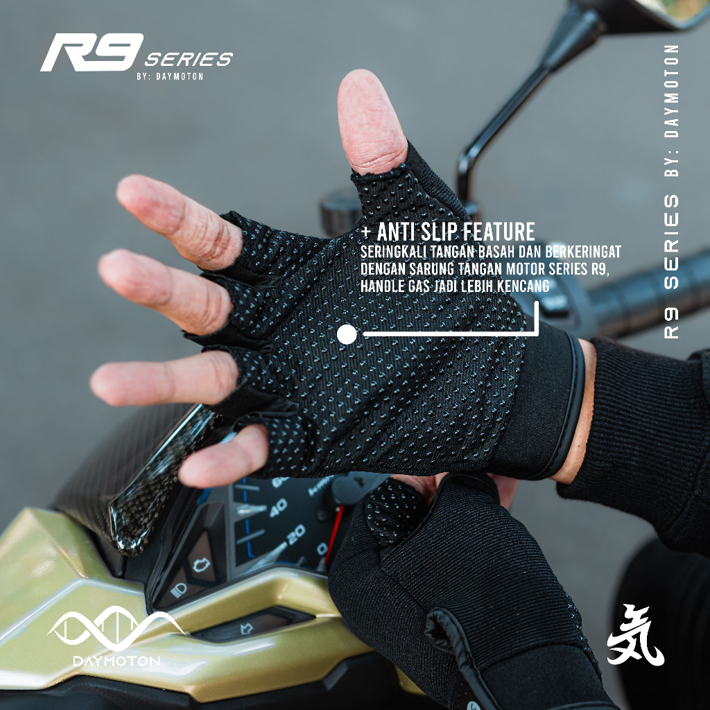 DAYMOTON Sarung Tangan Motor Half Finger R9 – Unisex, Anti Slip, Nyaman Harian