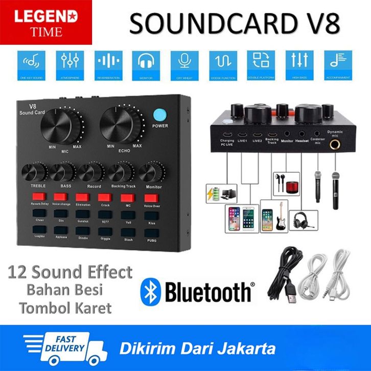 Soundcard V8 External Audio Mixer Untuk Live dan Karaoke