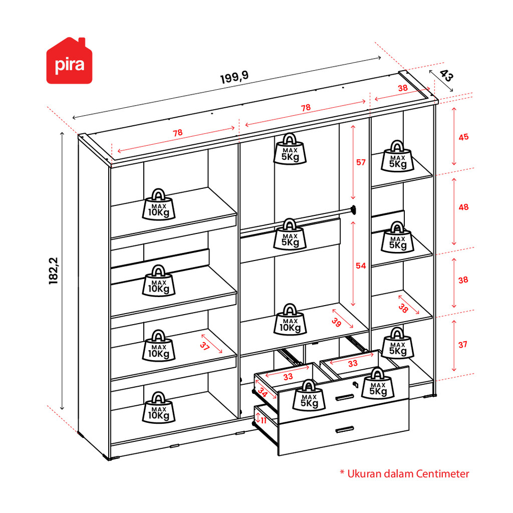 [Star] Terbaru PIRA METROPOLIS OX - ASTA 5PL A / Lemari pakaian Minimalis / 5Pintu dengan2 Laci / Wardrobe motif Kayu