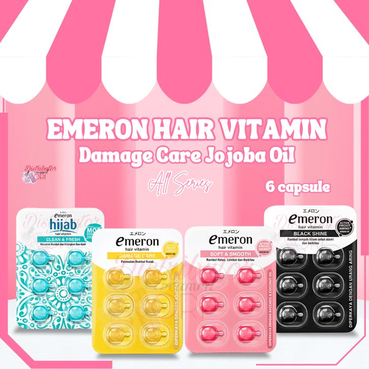 Emeron hair vitamin 6 capsule Damage Care Jojoba Oil Black Shine Active Provit Amino+ Argan Oil BPOM / MAGEFY