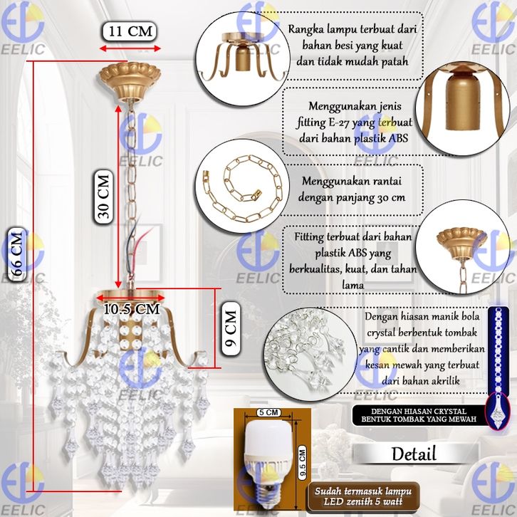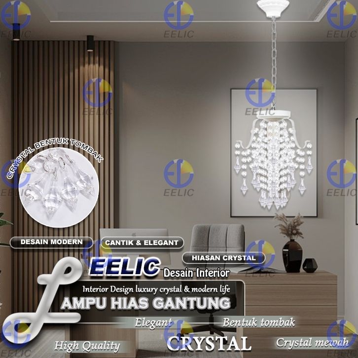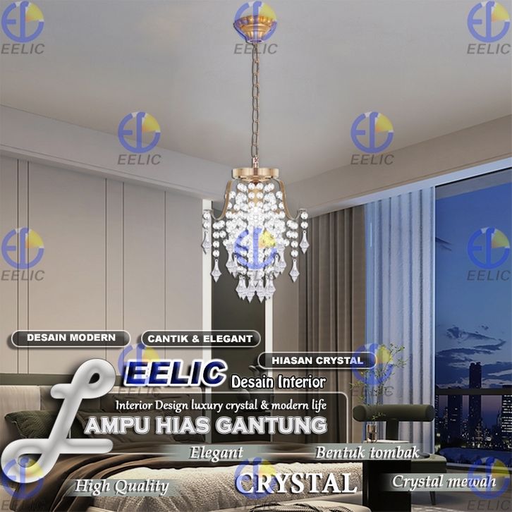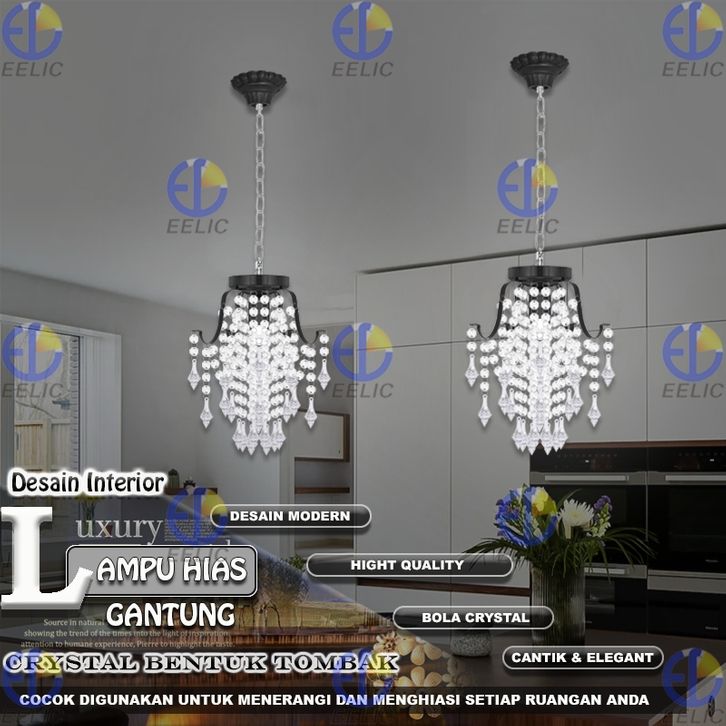 TERLAKU EELIC LHG-330 Lampu Hias Gantung Crystal 4 Cabang Fitting E-27 Hiasan Manik Crystal Memberi Kesan