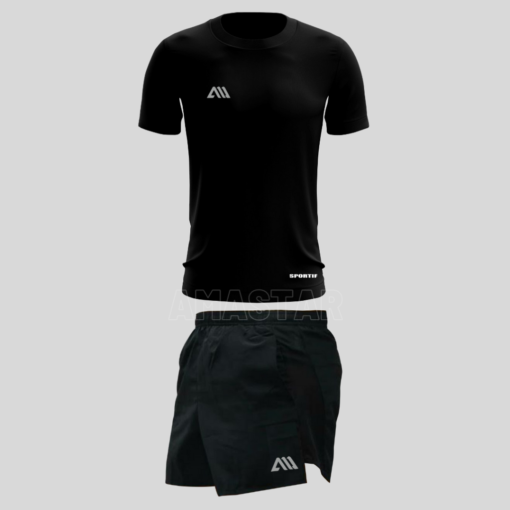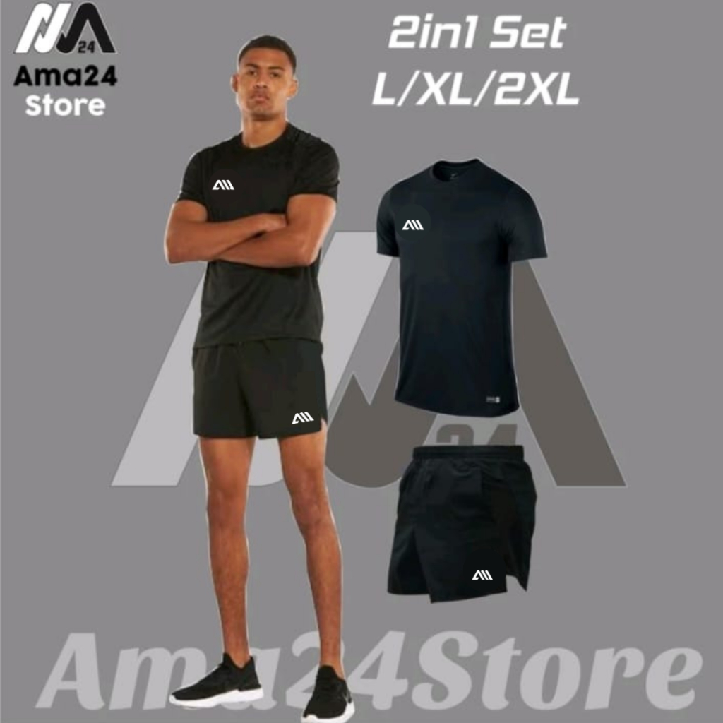 AMA 2 in 1 Setelan Running Baju Jersey Celana Pendek Celana Lari Olahraga Pria Jumbo