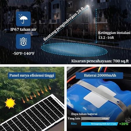 PROMO 【Garansi 10 Tahun】Lampu Jalan Tenaga Surya 1000W Street Cell Lights Led Otomatis 24 Jam Tahan Air 0 Biaya