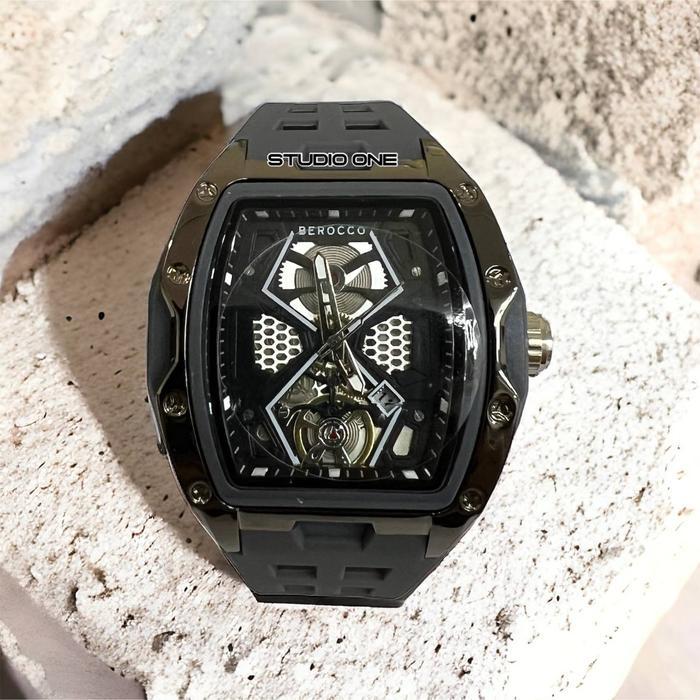 (Studio One) Jam Tangan Pria BEROCCO Original Strap Ruber Water Resist 07 - HITAM