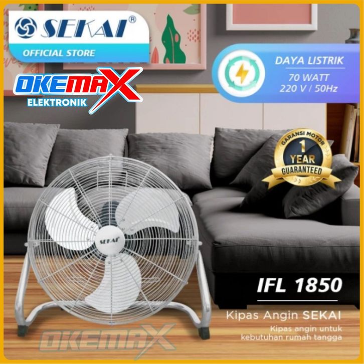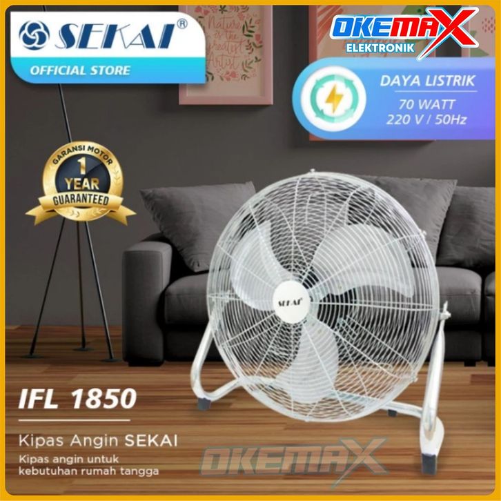 SEKAI Metal Floor Fan Kipas Angin Lantai Industrial Tornado 18 Inchi 45 Cm IFL-1850