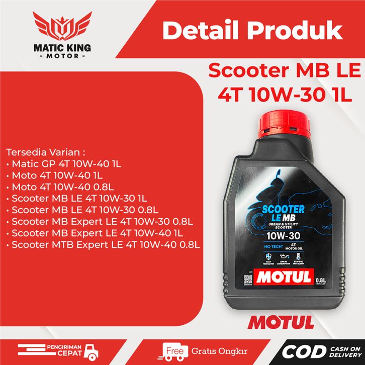 Promo Oli Motor Motul Oli Mesin Scooter Le SAE 10W-30 MB Oli motor matic 800 mili 1L