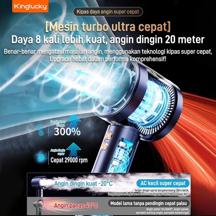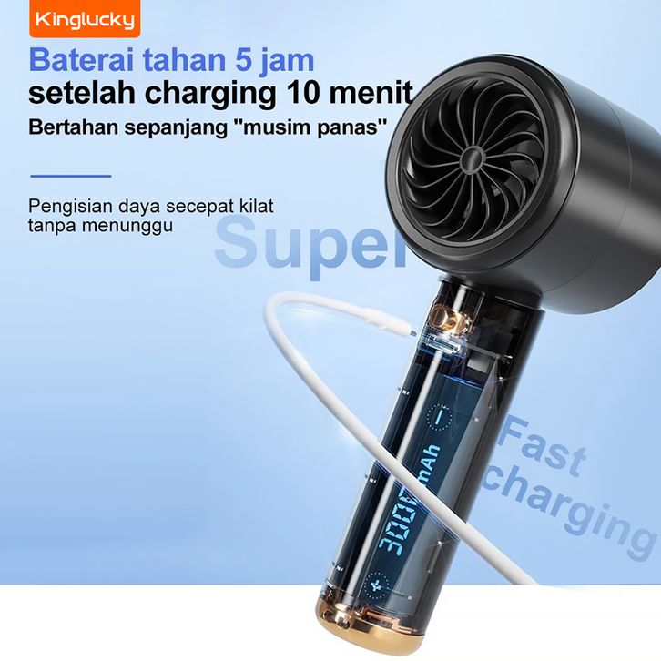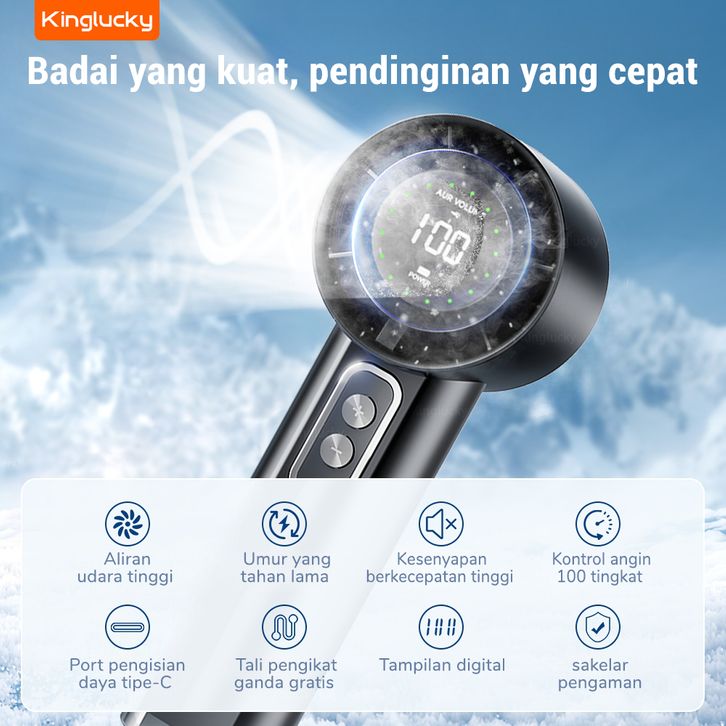 NEW Kinglucky s02 Kecepatan Tinggi Portabel kipas 100 Gear Wind kipas angin LED Digital Display 3000 mAh