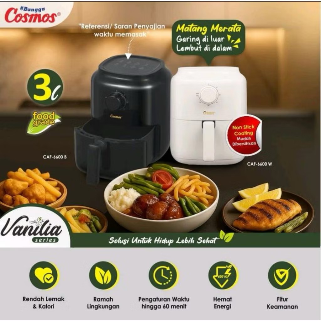 Cosmos Air Fryer CAF-6600 Vanila Series Penggoreng Tanpa Minyak 3 Liter Warna Hitam / Putih