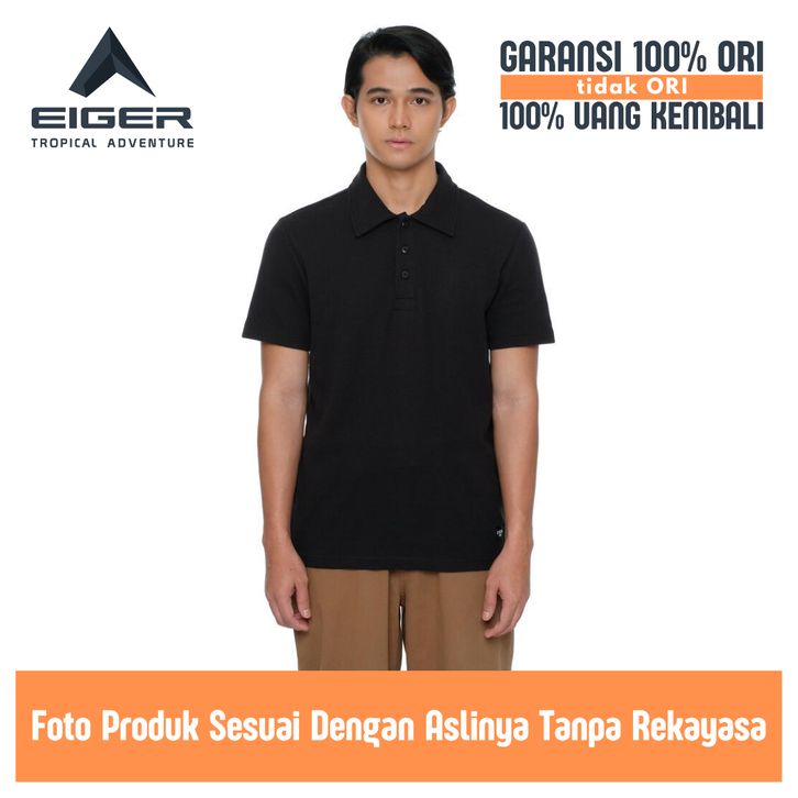 Kaos Polo Pria Lengan Pendek Eiger Original Baju Kerah Bahan Katun Hitam Bowlandshirt Ss