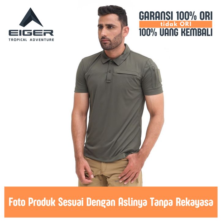 Kaos Polo Pria Lengan Pendek Eiger Original Baju Kerah Bahan Polyester Hitam Lezerno Ss