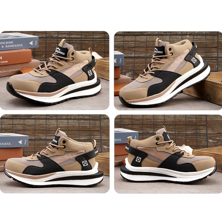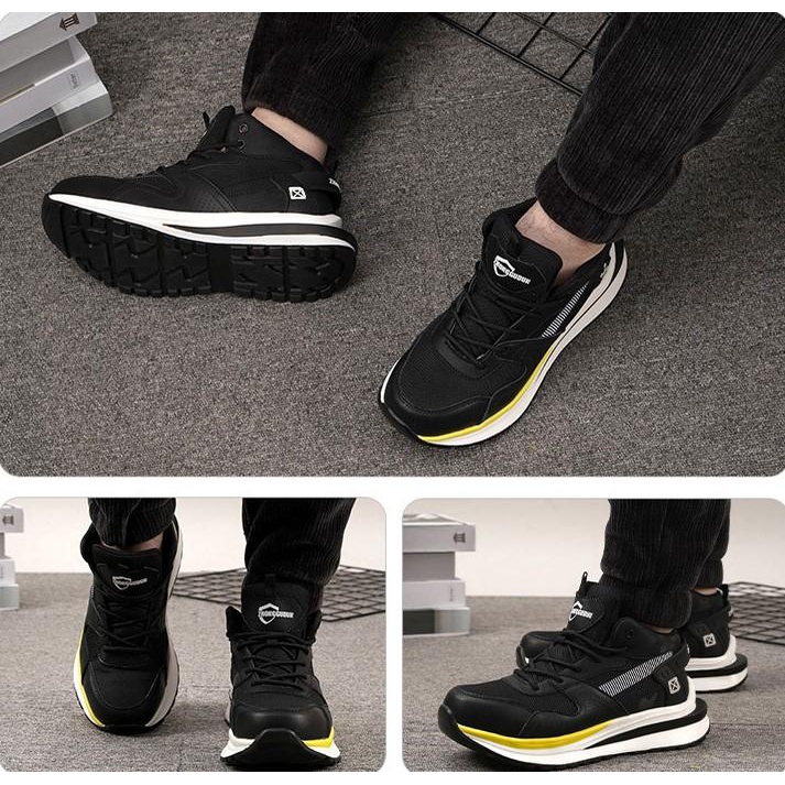 Sepatu Sneakers Safety shoes Sporty casual pria dan wanita ringan ujung ada besi hitam dan coklat