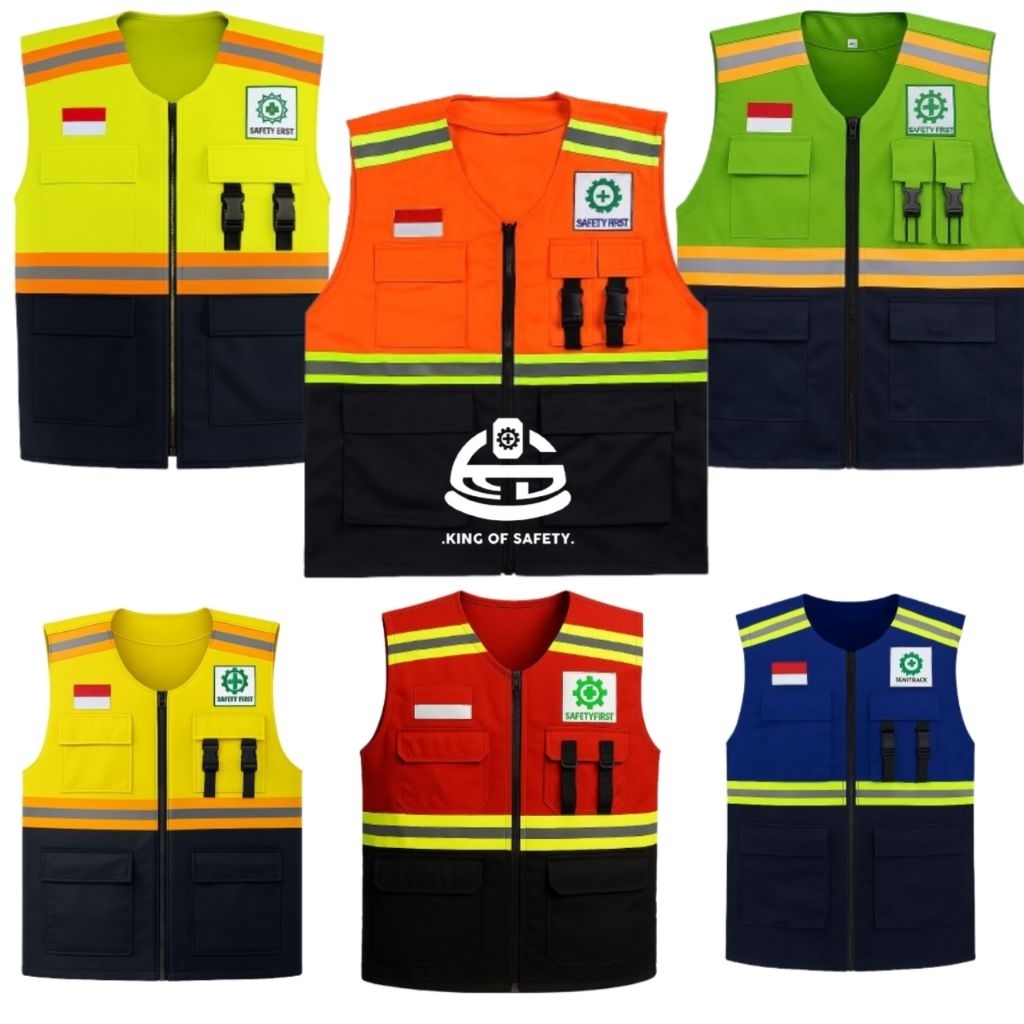 rompi safety|rompi sefti|rompi proyek|rompi k3|rompi HSE Warna Merah Kombinasi Biru Navy