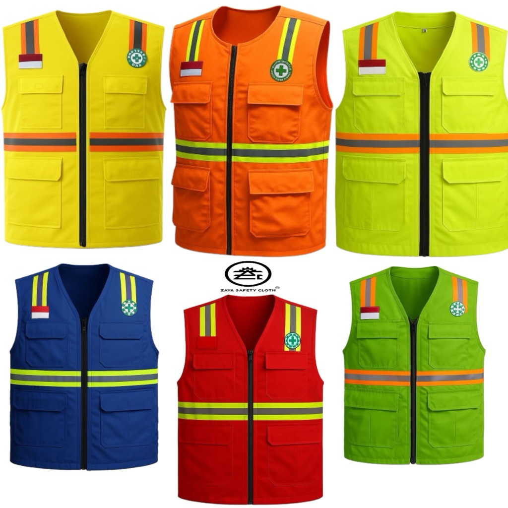 ZAYA SAFETY [ FREE LOGO SAFETY & BENDERA ] Rompi Safety, Rompi Safety Proyek Lapangan, Rompi Proyek