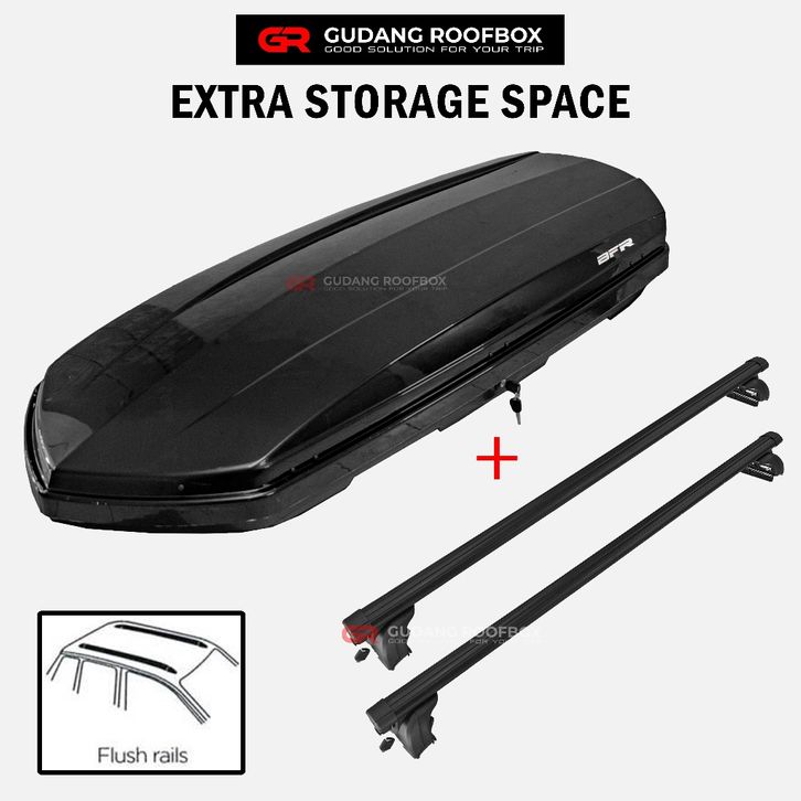 Paket Roof Box Roofbox dan Crossbar Crossbar Mobil Flush Rail Fortuner Pajero Terios Rush