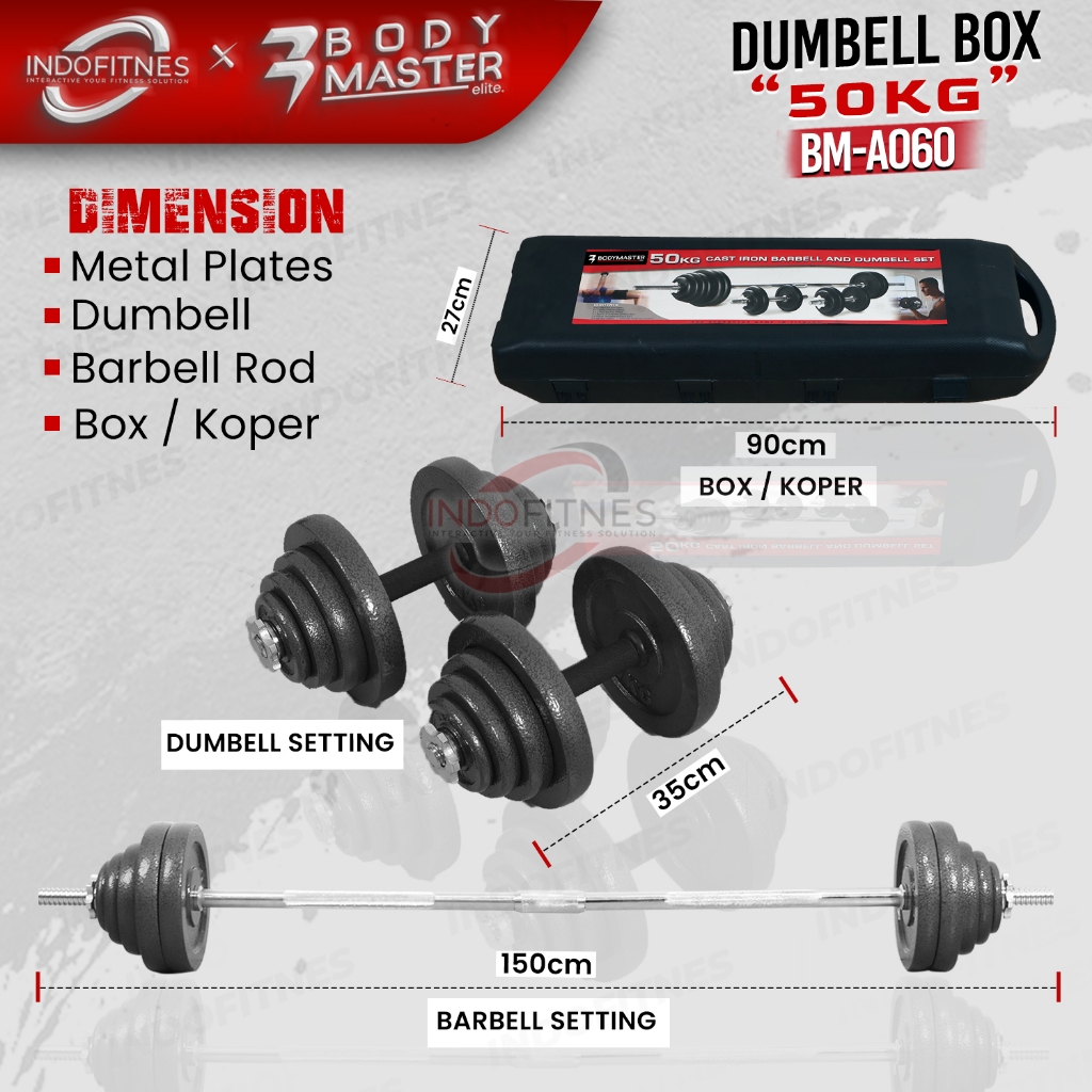 BODYMASTER Dumbell Set Box 50kg A060 Barbel Koper 50 kg Dumbel