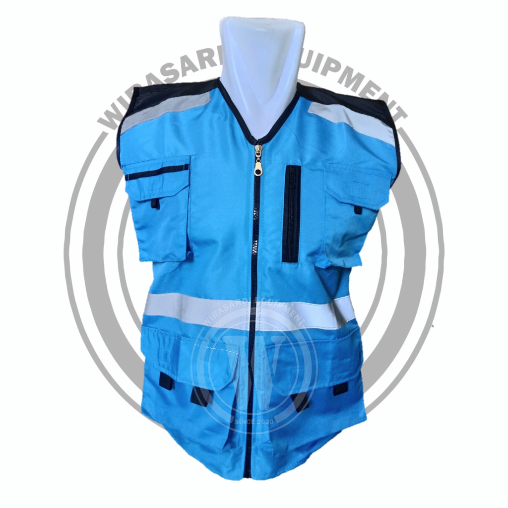 Rompi Safety Proyek K3 Biru Bahan Taslan WaterProof High Quality Terbaru Bisa