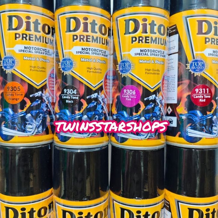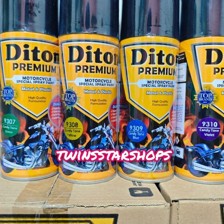 BLACK 9109, BLACK DOFF 9184, BLACK METALIC 9239, BLACK SEMI DOFF 9183, CANDY BLACK 9304, CANDY BLUE 9309, CANDY GREEN 9307, CANDY ORANGE 9305, CANDY PINK 9306, CANDY RED 9311, CANDY VIOLET 9310, CANDY YELLOW 9308, CLEAR DOFF 9130, CLEAR GLOSSY 9128, CLEAR SEMI DOFF 9129, EPOXY/PRIMER G. 9120, LEMBAYUNG 9OLD 9201, LEMBAYUNG BLUE 9202, LEMBAYUNG GREEN 9203, LEMBAYUNG VIOLET9200, PAINT REMOVER DITON, PERONTOK CAT DITON, SILVER 9124, SILVER GREY MET 9178, SILVER METALIC 9180, STIKER REMOVER 300ML, SUPER WHITE 9103, WHITE 9102