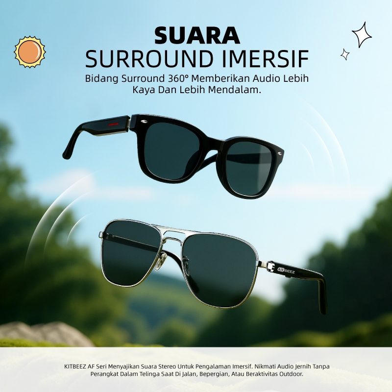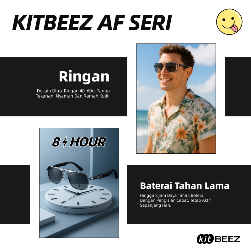 KITBEEZ AF-1/AF-2 Smart Glasses Kacamata Sunglasses with Kamera TAC+UV400 Anti Radiasi Wireless Bluetooth Original