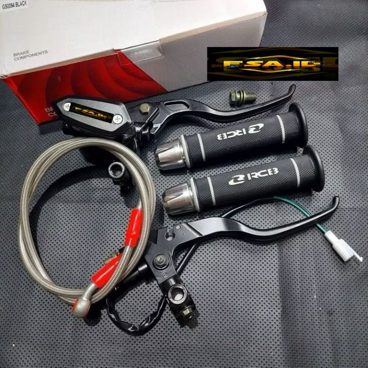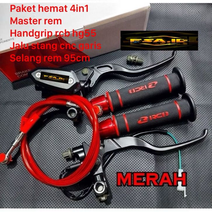 GROSIR paket master rem 0val plus handgrip RCB HG-55 +Jalu stang Garis cnc+Selang rem depan 95cm 4in1 fsa efobk