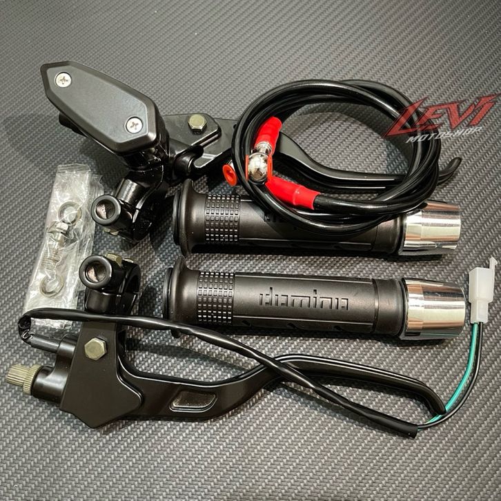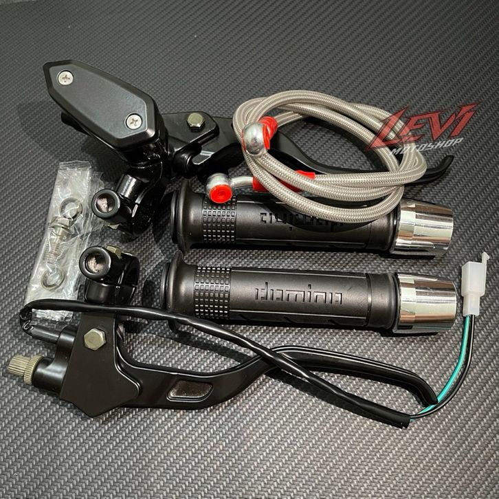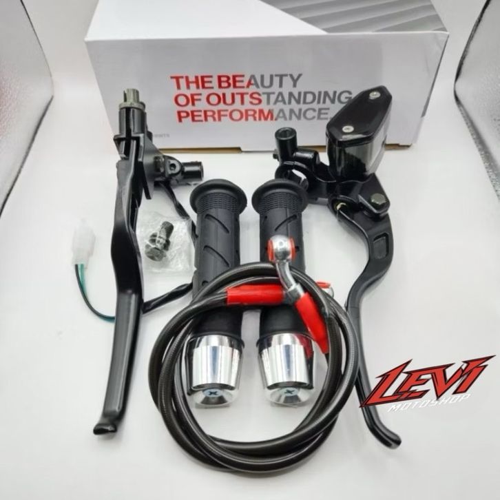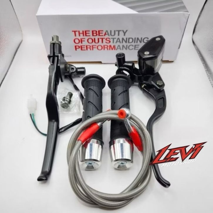 TERBARU Paket 4in1 Master Rem Tabung Tipe Oval + Handgrip Sisik + Jalu Stang Chrome + Selang Rem 95cm Universal