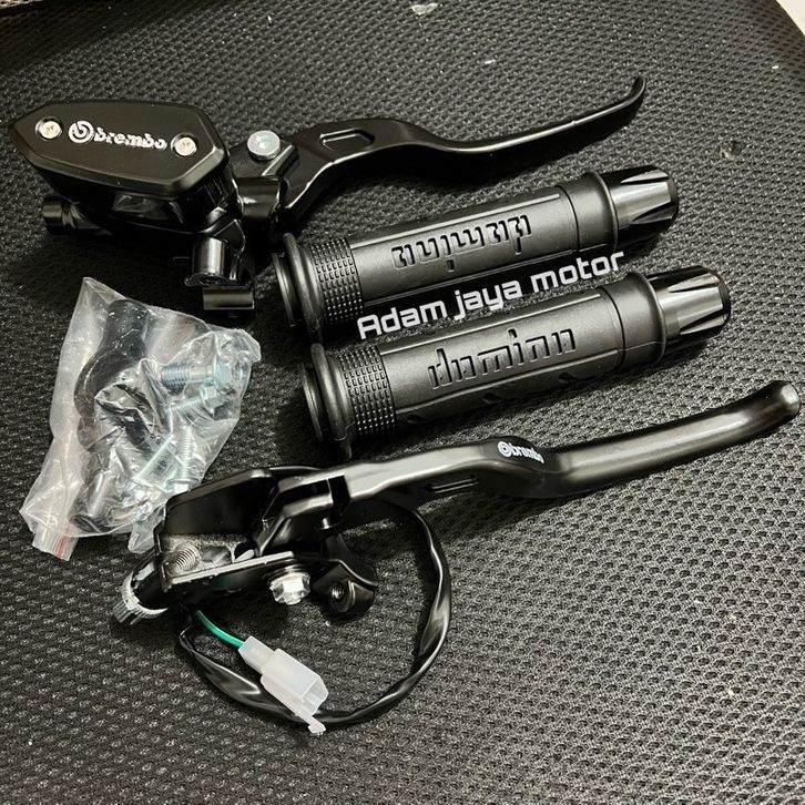 TERLAKU {KJ} [Bisa ] Paket Set Master Rem Tipe Oval + Handgrip Sisik + Jalu Stang Cnc Universal - emn